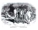 In 1872 one wing of the Republican Party, called "Stalwarts," nominated Ulysses S. Grant for president, despite the scandals that had rocked his administration. Disaffected members of the party, called "Liberal Republicans," were concerned about the immorality of the national party and the disarray in Republican governments in the South and urged a new course. They nominated Horace Greeley, editor and former abolitionist, for president. The Democratic Party, still disorganized from its electoral defeat in 1868, could do no better than endorse the Liberal Republican nominee. The Stalwarts painted Greeley as an apostate and papered over internal differences among Republicans on such issues as civil service reform, tariffs, and Reconstruction policy, by "waving the bloody shirt," in effect reminding voters that the Democrats were the party of disunion and the Republicans were the true heirs of Washington, Lincoln, and the Union. The Stalwarts called in their patronage chits and turned out the vote for Grant and their friends. Although the Republicans would face continued stiff opposition from Democrats after 1872, with the election the Republicans emerged as the predominant party nationally and would remain so into the next century. In the 1872 election, the last new party became the Grand Old Party. "A Leaf from History for our Foreign-Born Citizens," in Frank Leslie's Illustrated Newspaper, September 28, 1872. "New York-Reception Given by Horace Greeley to the Committee of the Democratic National Convention, at his Chappaqua Farm...," in Frank Leslie's Illustrated Newspaper, August 3, 1872. |