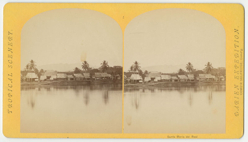 The Print and Photograph Department contains several series of these expedition views, including twelve stereographs published 1870-1871 by J. F. Jarvis of Thomas O. Selfridge’s Darién Expedition. Under the auspices of the United States’ War Department, the expedition set out in 1870 with photographer Timothy O’Sullivan to explore the Isthmus of Darién (Panama) to determine the feasibility of constructing a canal to connect the Atlantic and Pacific Oceans. Although the journey was fraught with successive misfortunes, Sullivan was able to capture in his photographs the natural beauty of the villages, people, rock formations, small islands, and waterfalls indigenous to the Panama area.