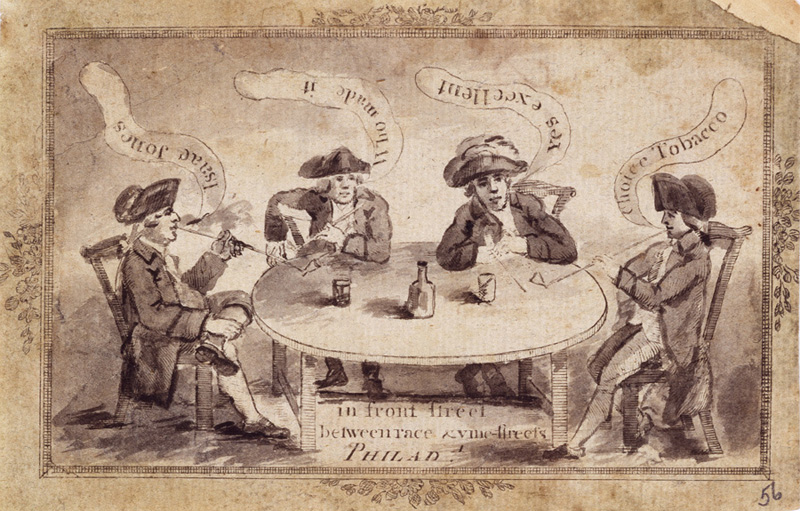 [Isaac Jones, Tobacconist] (Philadelphia, ca. 1780). Ink and wash drawing.