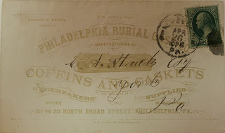 | Philadelphia Burial Co. envelope, ca. 1875. Proprietors George W. Hanna, George. M. Hanna, and John W. Hanna. |