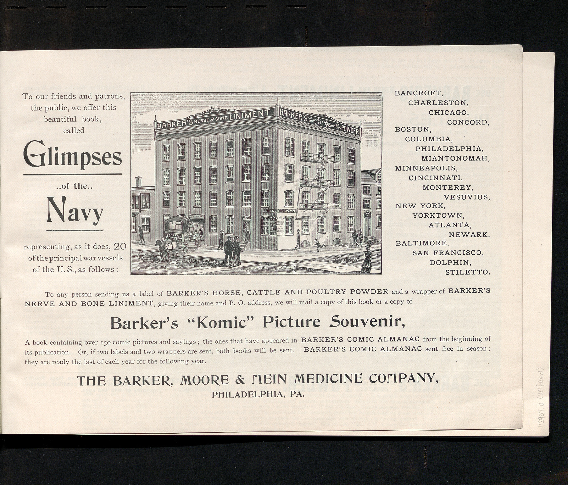 Expeditions, whether for exploration or expansion, were a topic of great interest to the public. Manifest Destiny–the driving principle behind many expeditions–particularly appealed to white Americans at the turn of the twentieth century. The U.S. Navy and its history became a significant part of the narrative justifying the United States as a major global power. Merchants would use naval imagery and make dubious claims of naval affiliations to sell their wares. Little children would play with toy sailors, marines, and ships; sailor suits were popular children’s apparel. At the Library Company, new books on the USN and USMC were purchased routinely and proved very popular among our members.