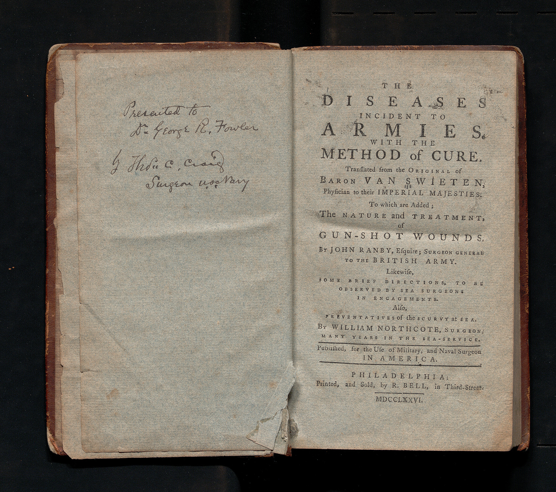 A prefatory note in this edition from “the American editor, to the public” explains that they chose to publish this work on military medicine in Philadelphia in 1776 so that it might help “in the preservation of the lives of many of those valuable citizens of America, who, as soldiers and sailors, are now contending for the mighty prize of FREEDOM.”