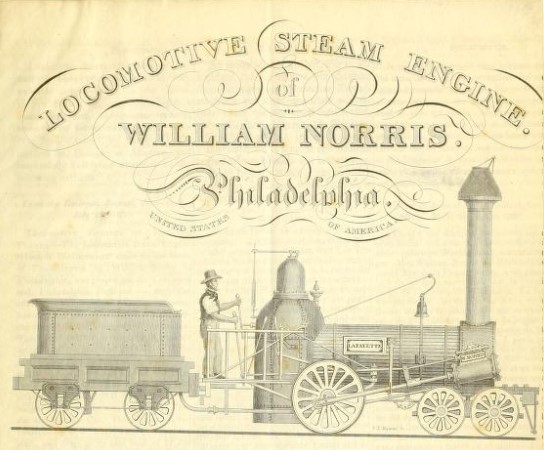 Norris was a builder of steam locomotives. The 1835-1836 Philadelphia directory lists his occupation as simply “America steam carriage co.” Indeed, he had founded that company with Major Stephen H. Long. When his partner left the company, Norris renamed the business “Norris Locomotive Works.” It was one of the dominant builder of locomotives in the U.S. from the 1830s into the 1860s.