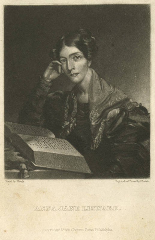 Linnard, Anna Jane. In Baird, R. Memoir of Anna Jane Linnard. 2nd ed. (Philadelphia, 1837), frontispiece.