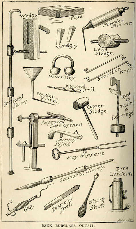 “Bank Burglars’ Outfit,” from, George Washington Walling. Recollections of a New York Chief of Police. New York: Caxton Book Concern, 1887.