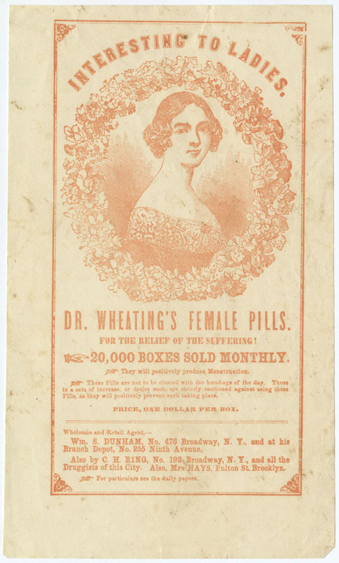 Interesting to Ladies. Dr. Wheating’s Female Pills. [New York, ca. 1860]. |