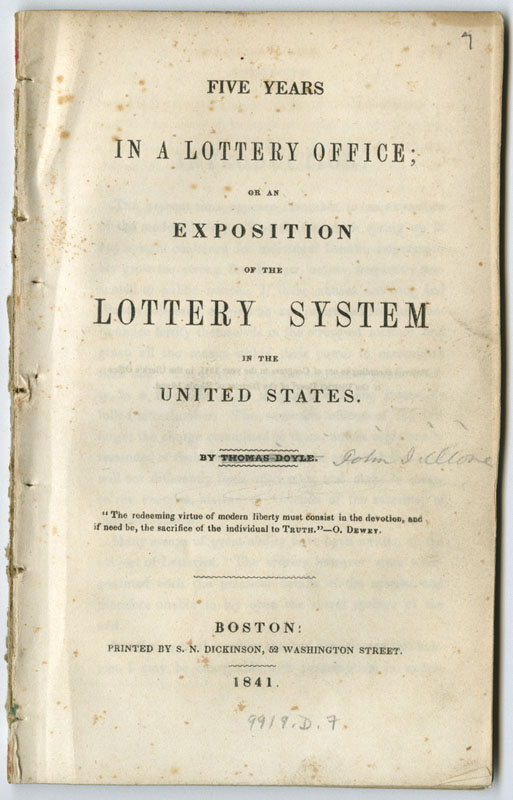 Thomas Doyle. Five Years in a Lottery Office; or, An Exposition of the Lottery System. Boston: S. N. Dickinson, 1841.