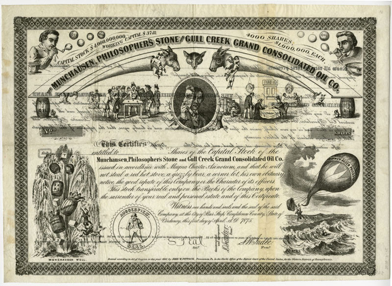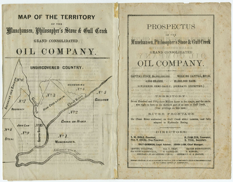 The Munchausen, Philosopher’s Stone and Gull Creek Grand Consolidated Oil Co. Pittsburgh: John W. Pittock, 1865.