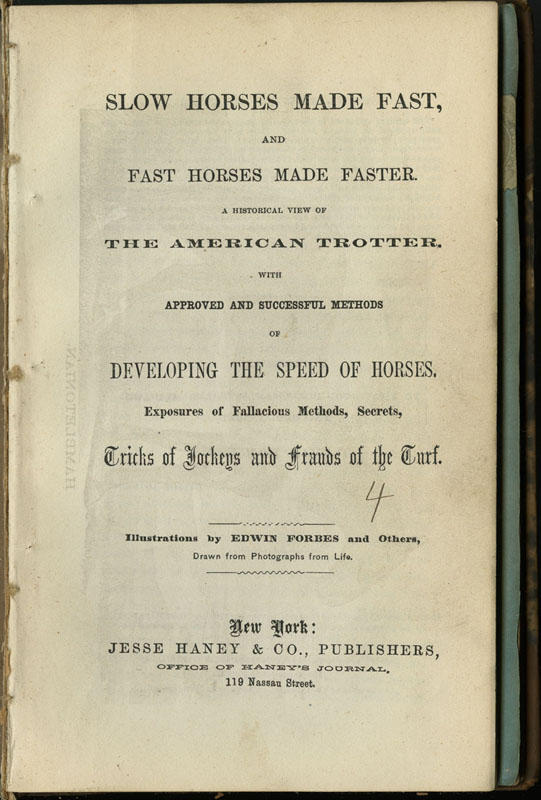 Slow Horses Made Fast and Fast Horses Made Faster. New York: Jesse Haney & Co., 1871. |
